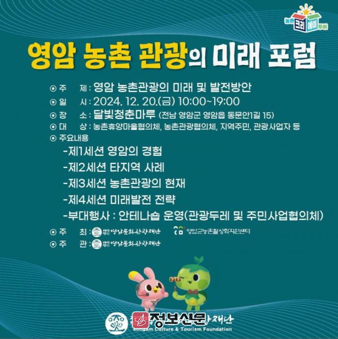 ![]() (재)영암문화관광재단, ‘2024 영암 농촌관광의 미래 포럼’ 개최 |