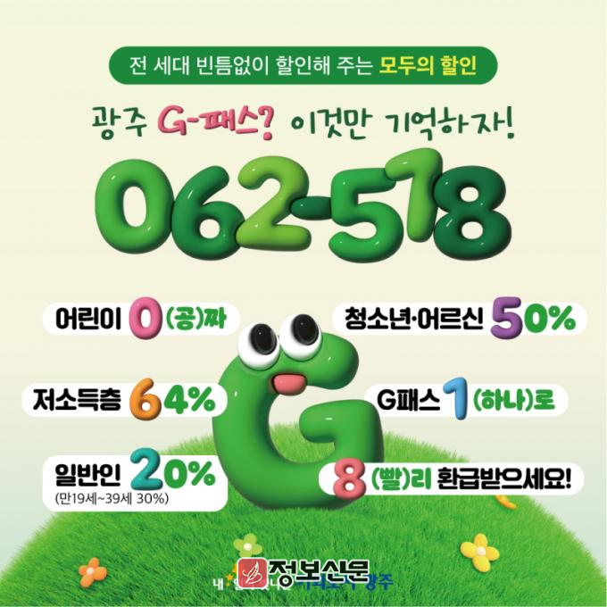 특히 어린이 무료·청소년 반값 할인, 어르신 50%, 저소득 64% 환급은 ‘광주G-패스’만의 특징이다.