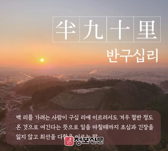 반구십리(半九十里)는 '백 리를 가려는 사람이 구십 리에 이르러서도 이제 절반쯤 왔다고 여긴다'는 뜻의 사자성어다.