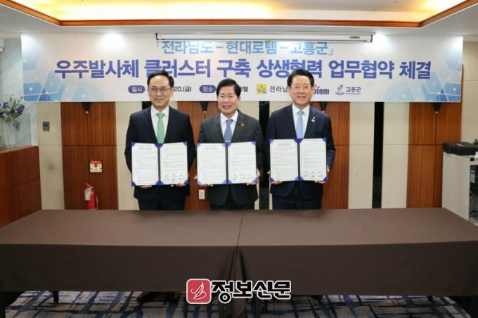 이날 협약식에는 공영민 고흥군수, 김영록 도지사, 이용배 현대로템 사장이 참석해 발사체 특화 지구로 지정된 고흥군에 우주발사체 산업 클러스터 구축과 우주산업 육성을 위해 상호협력 하기로 뜻을 모았다.