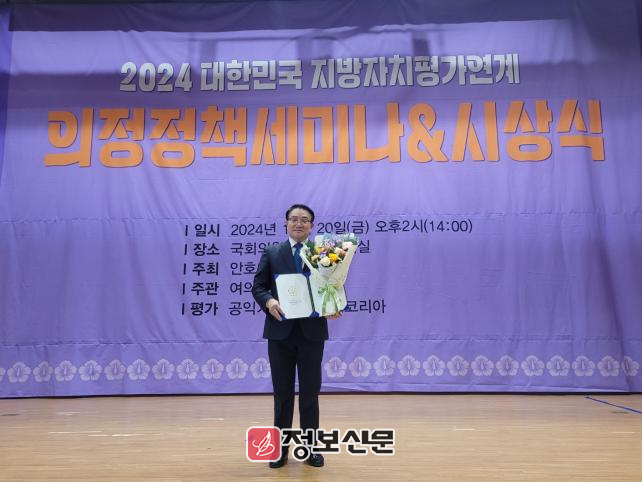 ![]() 전북특별자치도의회 강태창 의원, ‘2024 지방자치평가 의정정책대상’ 최우수상 수상 |