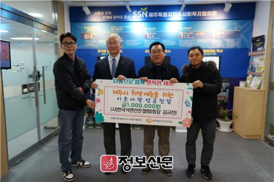 이날 전달된 기부금은 협회 임직원 50여명이 지난 1월부터 11월까지 감리업무를 통해 수입금을 일부 적립하는 방식으로 마련한 성금이다. 성금은 제주시와 서귀포시 각각 100만원씩 지역 내 독거노인과 취약계층 가정의 식품 지원을 위해 쓰일 예정이다.
