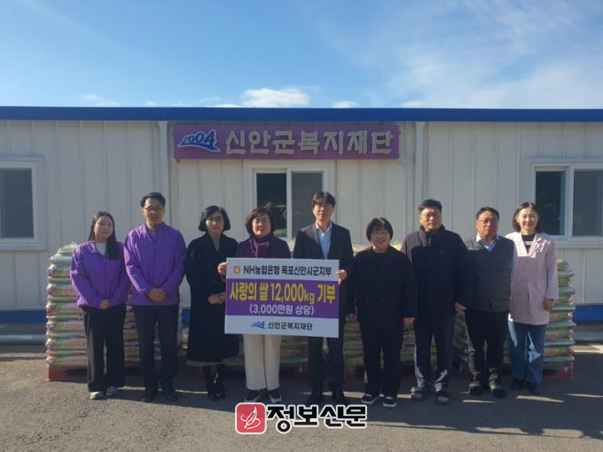 농협은행 목포신안시군지부는 복지재단에 꾸준한 기부를 통해 나눔을 실천하고 있으며 연초에는 저소득계층 지원을 위하여 5,000만 원을 기부하였고 설을 맞이하여 500만 원 상당 떡국 지원과 공립아동센터 학생들에게 책가방 70개를 기부하는 등 지역사회 어려운 이웃을 위해 꾸준히 나눔을 실천하고 있습니다.