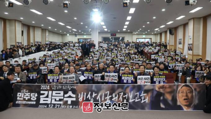 더불어민주당 김문수 국회의원(전남 순천광양곡성구례갑)이 12월 21일 국립순천대학교 산학협력관 파루홀에서 열린 ‘2024 비상시국 의정보고회’를 대성황리에 마쳤다.