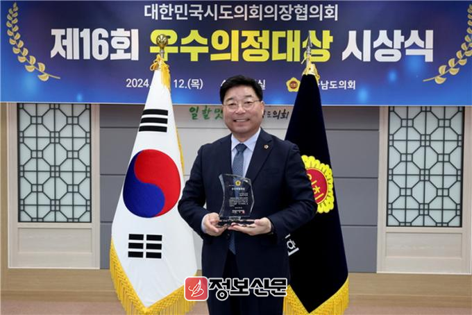 우수의정대상은 대한민국시도의회의장협의회가 광역 시·도의원 가운데 지역주민의 복리증진 및 삶의 질 향상과 지방자치 발전에 기여한 공로가 큰 의원을 발굴해 수여하는 상이다.