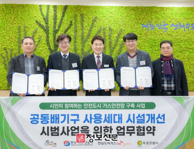 이번 협약에 따라 시와 전남도시가스(주)는 지역 내 안전·관리 사각지대에 있는 노후 공동주택의 가스보일러 공동배기구 사용 공동주택을 대상으로 시설개선 시범사업을 시행할 예정이다.