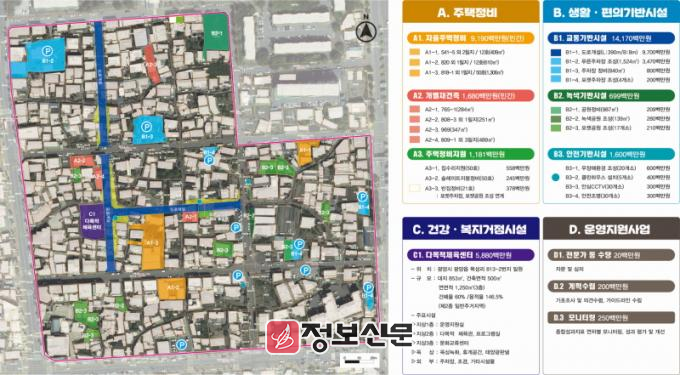 2024년 이번에 선정된 광양읍 성황마을의 주요 사업내용은 △주택정비(집수리, 슬레이트 지붕정비, 빈집정비) △생활·편의기반시설사업(도로 개설, 주차장 조성 및 정비, 공원정비 등) △건강·복지 거점시설사업(다목적 체육센터 1개소) 등이다.
