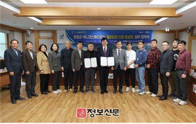 이에 이창수 유니크스튜디오스 대표는 “이번 협약을 통해 국내 밀리터리 산업을 선도하는 기업으로 도약하고 체류형 관광 콘텐츠 개발을 통해 인구 감소, 지역경제 활성화 등 지역 현안 해소에 큰 진전이 있도록 장흥군과 함께 적극 노력하겠다”고 말했다.