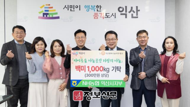 정헌율 익산시장은 "연말에도 지역주민을 위해 나눔을 실천해 주신 NH농협 익산시지부에 감사하다"며 "지원해 주신 소중한 물품은 어려운 이웃에 정성껏 전달하겠다"고 답했다.