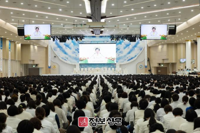 ![]() [사진 제공 = 신천지 광주교회]25일 경기도 수원시 장안구 신천지 수원교회에서 ‘성탄 기념 예배’가 열리는 가운데, 신천지예수교회 이만희 총회장이 설교를 진행하고 있다. |