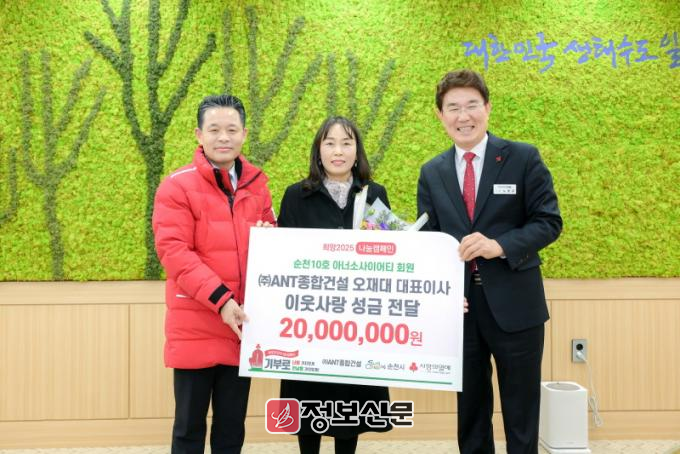 ![]() (주)ANT종합건설 오재대 대표, 순천시에 이웃돕기 성금 2천만원 기탁 |