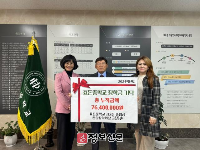 ![]() 천일장학회 김공순 선생, 효돈중학교에 장학금 기탁 |