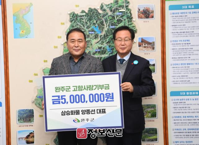 유희태 완주군수는 “양종선 대표의 따뜻한 마음과 나눔의 실천이 지역사회에 큰 감동을 주고 있다”며 “지역의 복지증대와 발전을 위해 소중히 사용하겠다”고 감사 인사를 전했다.