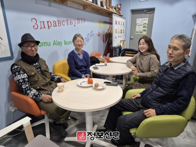 ![]() 독립투사 후손 고려인동포들의 마을공동체에 대한 국내외 학자들의 연구가 크게 늘어나는 가운데 프랑스 파리시테 대학 임은실 교수(왼쪽에서 두 번째)가 광주 고려인마을을 다시 찾았다./사진=고려인마을 제공 |