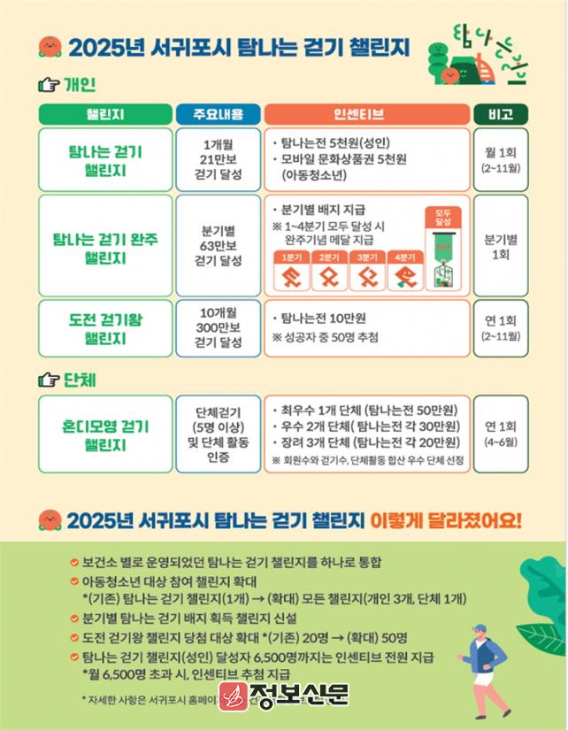 ![]() 서귀포시, 2025년 탐나는 걷기챌린지 사업 지속 운영 |