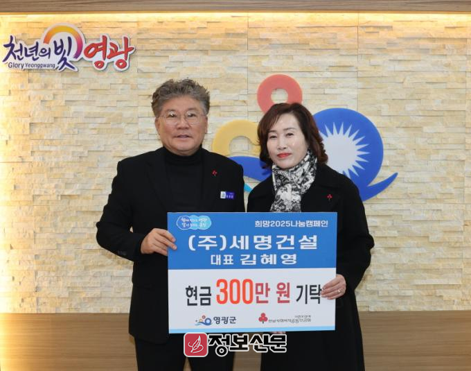 ![]() ㈜세명건설, 희망2025나눔캠페인 성금 300만 원 기탁 |
