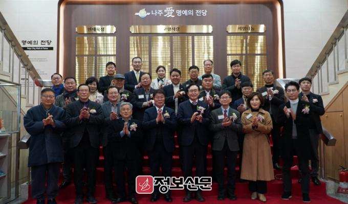 나주시(시장 윤병태)는 지난 27일 시청사 1층 로비에서 ‘기부 명예의 전당’ 제막식 행사를 개최했다고 30일 밝혔다. 시청사 로비 중앙계단 벽면에 설치한 기부 명예의 전당은 ‘인재육성’, ‘희망나눔’, ‘고향사랑’ 등 3개 부문 기부자 명단으로 채워진다.