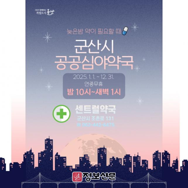 군산시에 따르면, 2022년 7월부터 보건복지부 시범사업으로 시작된 공공심야약국은 1개소로 현재까지 운영되고 있다.