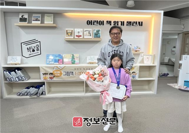 이날 수여식에서는 책넝쿨 2단계 첫 완주자 1호 고하엘(10세, 한라초등학교)을 비롯하여 1단계 13호 고지욱(8세, 삼화초등학교), 14호 고태욱(6세, 동원유치원), 15호 김하웅(6세, 참어린이집), 16호 고예린(8세, 아라초등학교) 어린이에게 인증서와 메달을 수여했다.