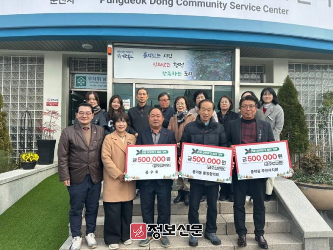 풍덕동통장협의회(협의회장 김영찬), 주민자치회(회장 김종선), 풍우회(회장 이동현)가 힘을 합쳐 모은 성금은 관내 어려운 이웃들에게 따뜻한 도움을 전하기 위한 작은 정성의 결실이다.