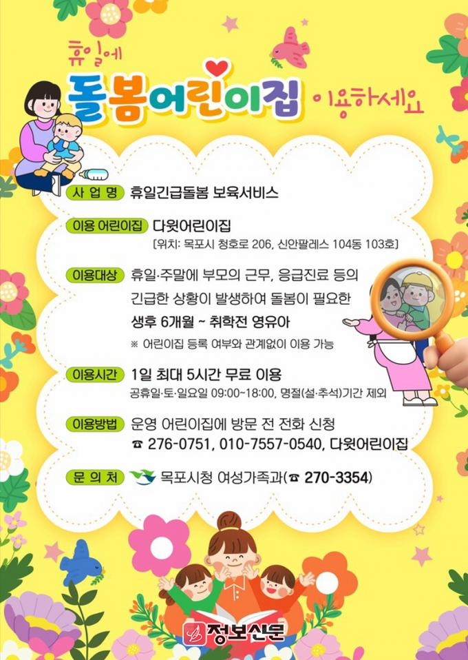 ![]() 목포시, 휴일긴급돌봄 어린이집 이용시간 연장 운영 |