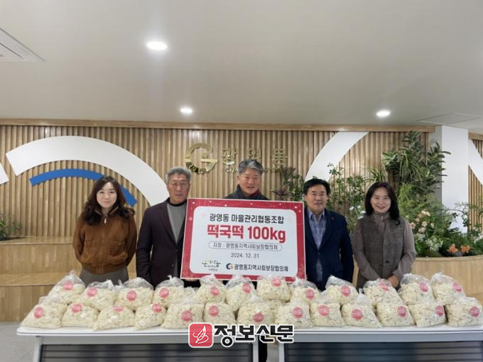 이정현 광영동 지역사회보장협의체 위원장은 “온 국민이 슬픔을 이겨내는 어려운 시기에 광영동 마을관리협동조합이 떡국떡을 기탁해주셨다. 주변의 어려운 이웃들에게 따뜻한 정을 나눌 수 있음에 감사하다”고 말했다.