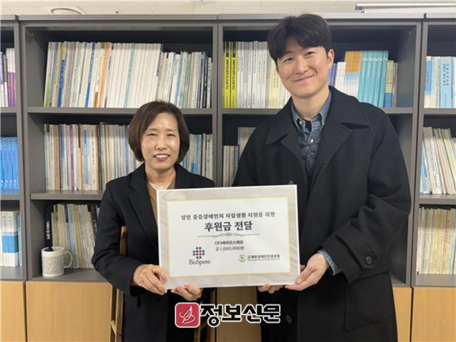 ![]() (주)바이오스페로, 제주장애인인권포럼에 후원금 전달” |