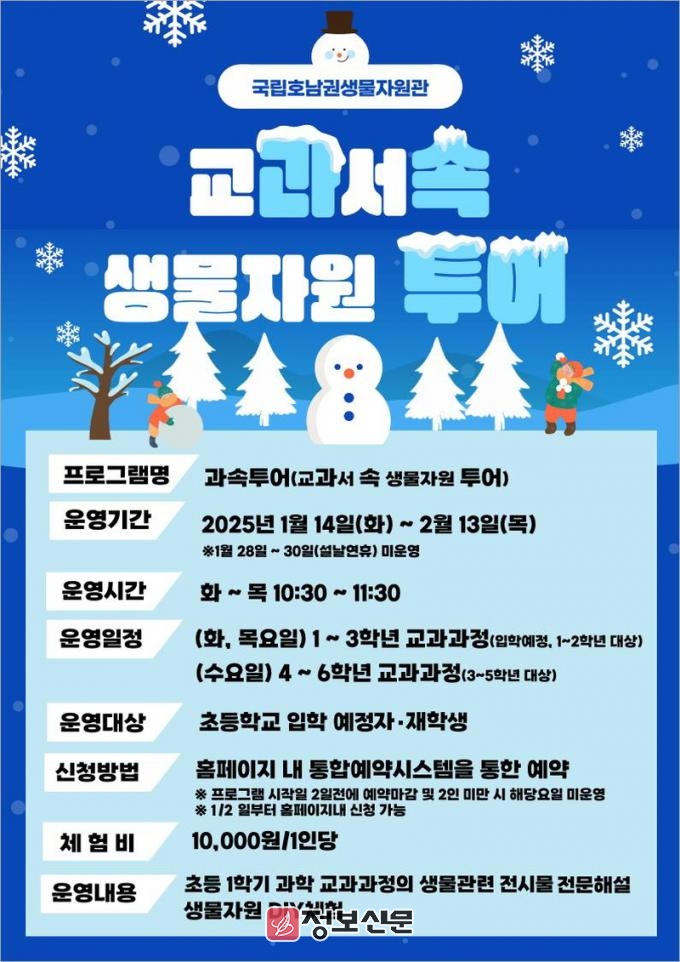 ![]() 국립호남권생물자원관, 겨울방학 맞이 ‘과속투어’ 운영 |