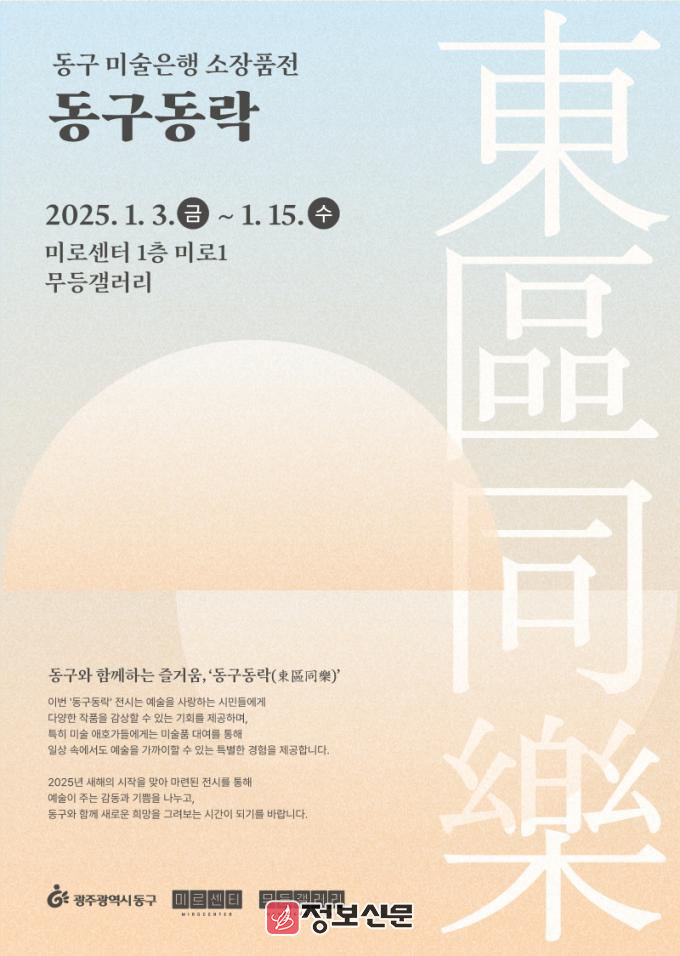 이번 전시는 동구 미술은행이 소장한 우수한 작품들을 주민들과 공유하기 위한 자리로, 전시 제목인 ‘동구동락(東區同樂)’은 ‘동구와 함께 나누는 기쁨과 즐거움’이라는 뜻을 담고 있다.