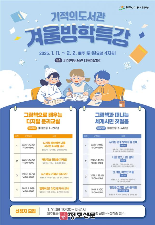 ![]() 기적의도서관, 예비 초 1~4학년 대상 겨울방학 특강 운영 |