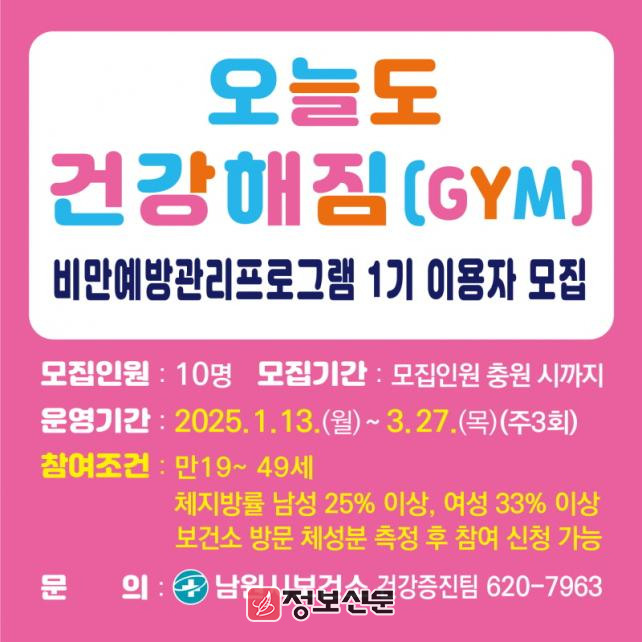 ![]() 남원시보건소, 오늘도 건강해짐(GYM) 운영 |