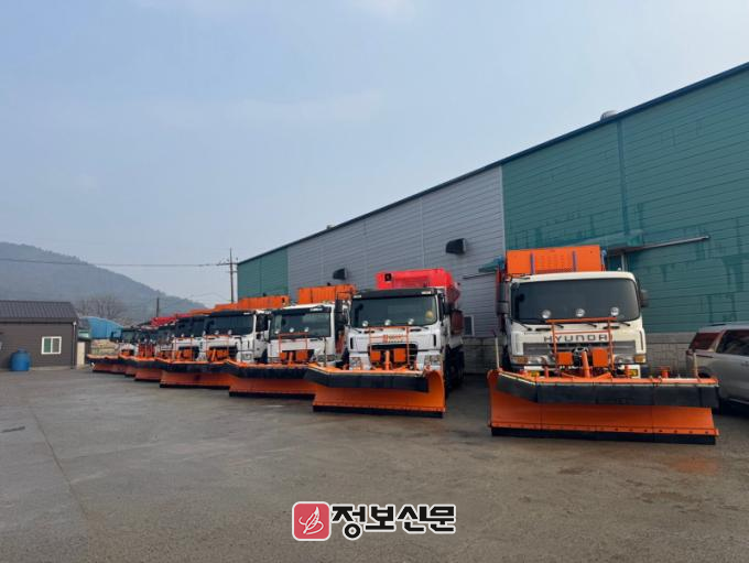 한편, 무안군에서는 제설차량 13대(임차 10, 도지원 2, 군보유 1)를 운영하고 있으며, 제설삽날 12대, 살포기 12대, 제설용 소금 및 친환경 제설제 1,100톤을 확보해 제설 대비에 만전을 다하고 있다.