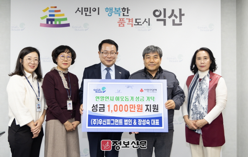 정헌율 익산시장은 "지역에 어려운 일이 있을 때마다 많은 관심을 가지고 후원해 주시는 ㈜우신피그먼트 관계자들께 감사드린다"며 "후원해 주신 성금은 도움이 필요한 분들께 정성껏 전달하겠다"고 답했다.