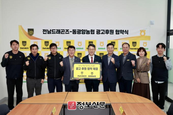 전남은 1월 6일 오전 동광양농협 하나로마트 광영점 3층에 위치한 전남드래곤즈 사무실에서 광고 후원 협약식을 개최했다. 협약식에는 전남드래곤즈 김규홍 대표이사와 동광양농협 이돈성 조합장을 비롯한 양사 관계자들이 참석했다.