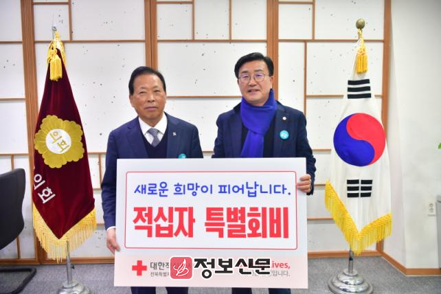 이날 전달식은 유의식 의장, 김재천 부의장을 비롯한 이선홍 대한적십자사 전북지사 회장 등 10여 명이 참석했으며, ‘2025년 적십자 특별회비 모금캠페인’에 동참하기 위해 마련됐다.