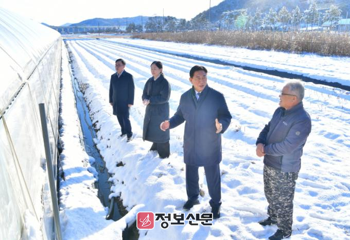 7일 비닐하우스 농가, 취약지역 등 현장 점검에 나선 김한종 장성군수는 “9일까지 눈 예보가 이어지는 만큼 긴장의 끈을 놓으면 안 된다”면서 “사고 제로(0), 군민피해 제로를 목표로 최선을 다해달라”고 관계 공무원들에게 당부했다.
