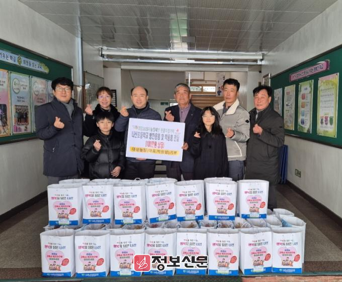 나산면 지역사회보장협의체는 지난 7일, 희망2025나눔캠페인의 일환으로 송암농장(대표 박상삼)에서 기부한 후원금을 통해 나산초등학교 전교생 51명에게 목도리와 담요, 필기구 등을 전달했다고 밝혔다.