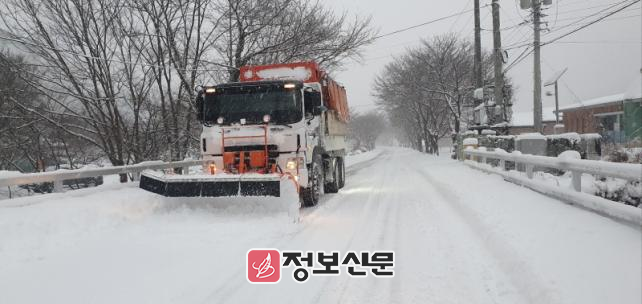 지난 8일 기준 누적 적설량이 25.7cm를 기록한 가운데, 군은 275개 노선 584.2km에 달하는 관내 도로에 대한 효율적인 제설 작업을 실시하여 주민들의 불편을 최소화했다.