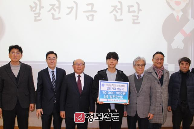 ![]() 귀일중학교 총동창회, 교발전기금 전달 |