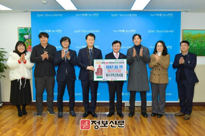![]() 여수시(시장 정기명)는 여수지역건축사회(회장 변형우)가 지난 9일 ‘희망2025나눔캠페인’에 성금 653만 원을 기탁했다고 밝혔다. |