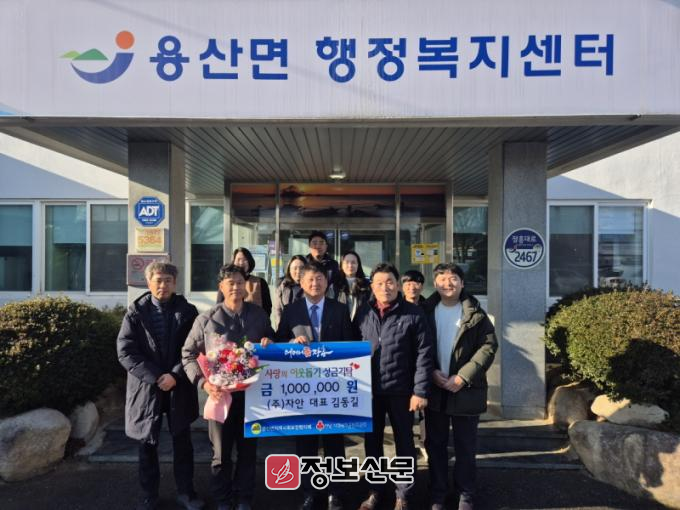㈜자안 대표 김동길은 “새해를 시작하며 우리 주변의 소외된 이웃들에게 조금이나마 도움이 되고자 성금을 준비했다. 앞으로도 지역 사회와 함께할 수 있도록 최선을 다하겠다.”라고 말했다.