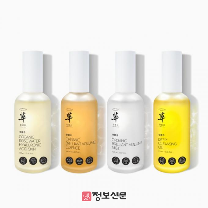 한편 손병규 대표는 화엄사 유기농 화장품 솔루션은 4단계로 구성이 되었다. “1단계 딥클렌징 오일이 모공 깊숙이 클렌징 및 영양을 공급하고 천연 함량 83%, 유기농 함량 47% 구성되었으며, 2단계 유기농 광채 볼륨 미스트가 피붓결을 정돈하고 수분을 공급하는 유기농 미스트는 천연 함량 97.9%, 유기농 함량 51%로 구성되었으며, 3단계 유기농 로즈워터 히알루론산 스킨이 피부 속 건조를 해결하고, 수분을 채워주는 유기농 스킨은 천연 함량 95%, 유기농 함량 82% 구성되었으며, 4단계 유기농 광채 볼륨 에센스가 피부에 탄력을 더하고 건강한 광채를 선사하는 유기농 에센스는 천연 함량 95%, 유기농 함량 66% 구성되어 피부를 탄력 있게 마무리한다고 말했다.”