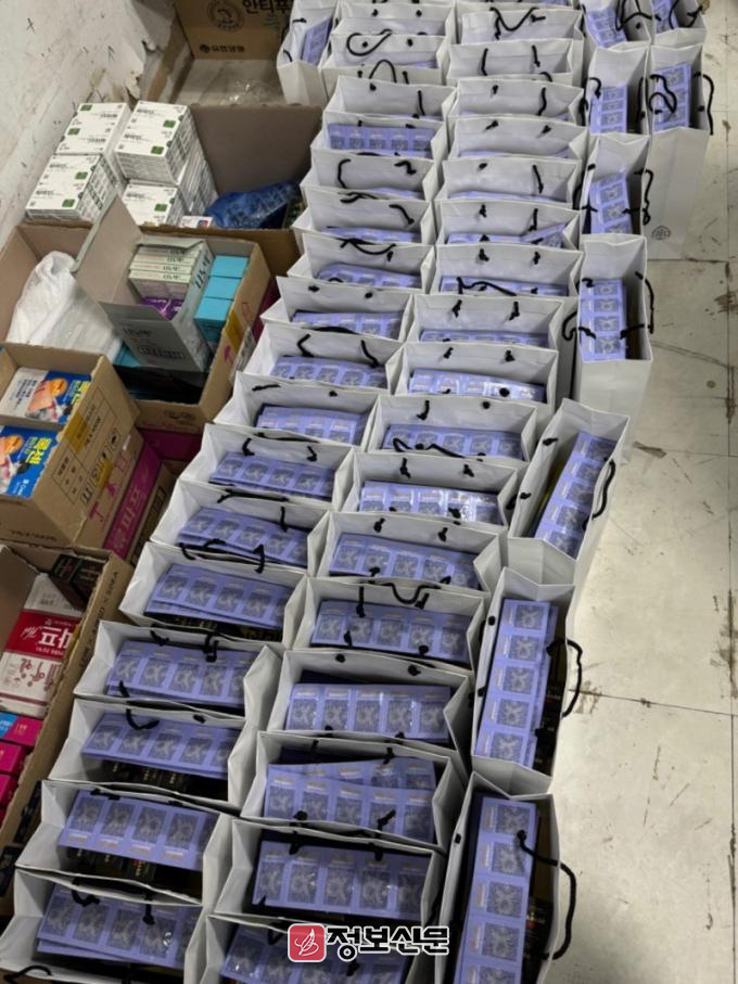 영양제 꾸러미는 비타민 드링크 10병, 비타민 알약 10정, 면역 영양제 7병, 청심원 3병으로 구성됐다.
