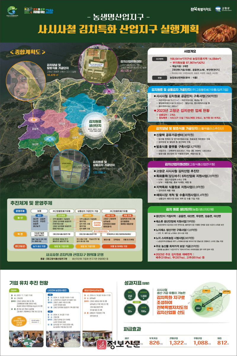 전북특별자치도와 고창군은 농생명산업지구에서 활동하는 기업과 농가를 위한 추가 특례를 발굴하고, 김치 원료 공급 거점화 단지를 육성하기 위한 생산기반 및 기업유치 환경조성 등을 지원한다.