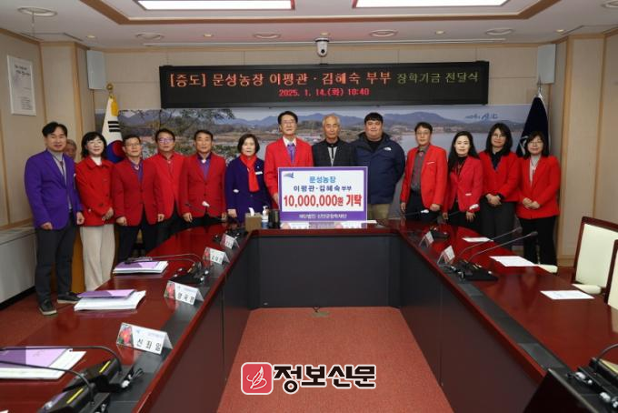 박우량 이사장은 “문성농장 이평관·김혜숙 부부의 따뜻한 나눔은 지역 학생들에게 큰 힘이 될 것이며, 지역사회의 발전을 위한 지속적인 관심과 지원에 깊이 감사드린다”라고 전했다.