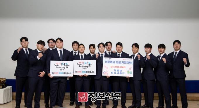 씨름단은 이렇듯 지역사회 안팎의 성원에 보답하는 의미로 이웃돕기 성금 500만원을 영암군에, 김민재 장사는 장학금 1,000만원을 (재)영암군미래교육재단에 기부하며 행사를 빛냈다.