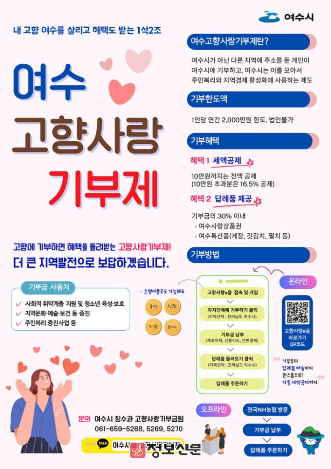 ![]() 여수시, 2024년 고향사랑기부제 8억 원 달성 목표 |