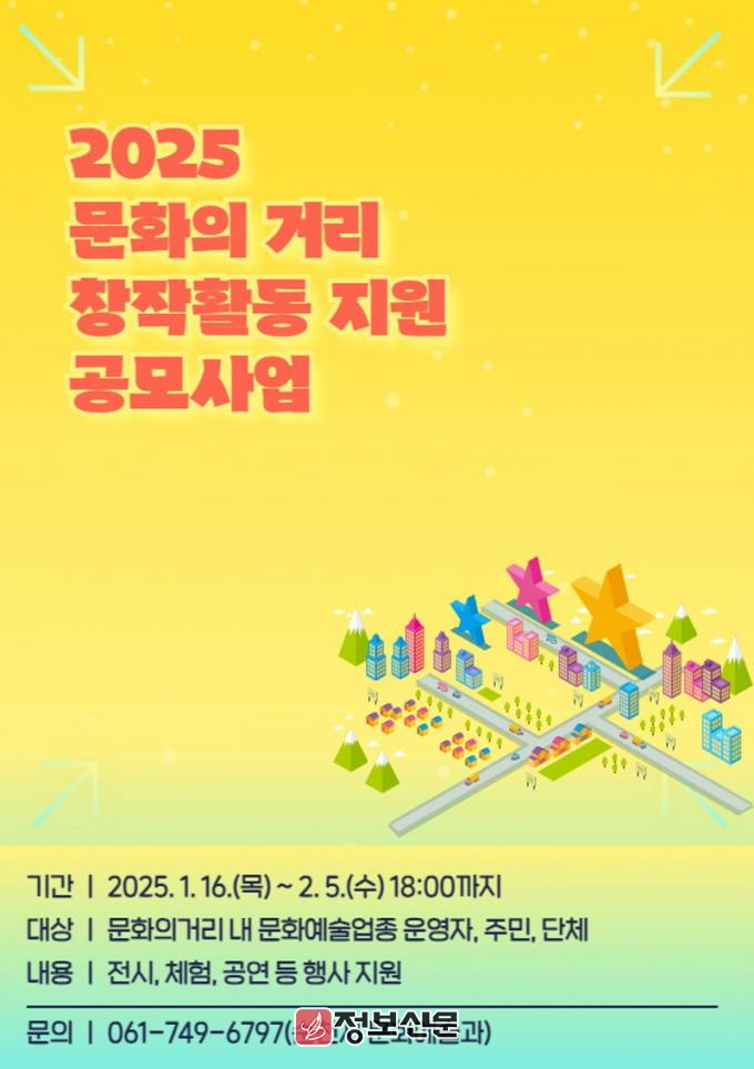 ![]() 순천시, 2025년 문화의 거리 창작활동 지원사업 공모 |