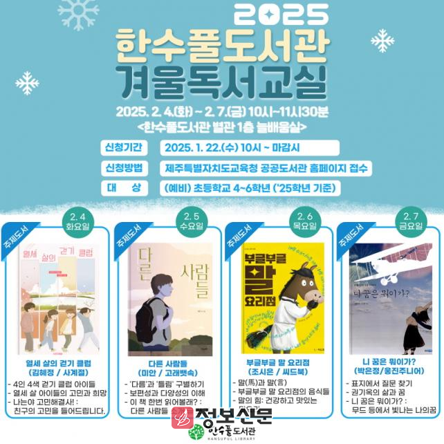 ![]() 한수풀도서관, 겨울 독서교실 운영 참가자 모집 |
