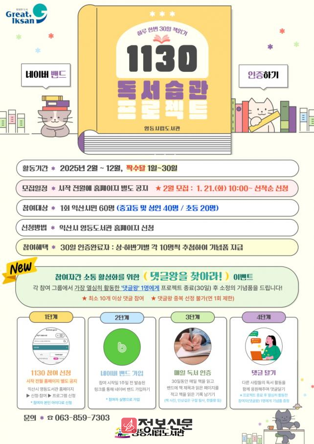![]() 익산 영등도서관, 1130 독서습관 프로젝트 운영 |